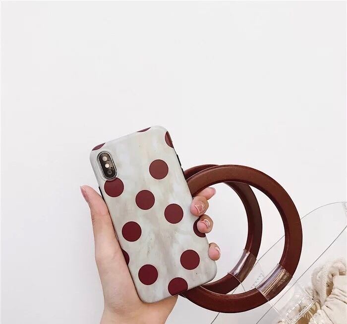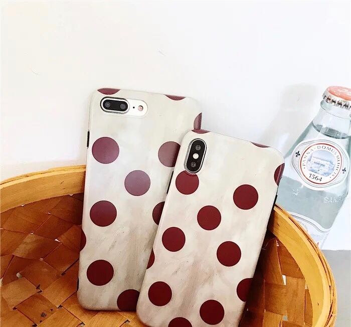 「国内即日発送」 在庫はiPhone7/8のみ 携帯カバー 携帯ケース iPhone ドット ワインレッド ビンテージ感 韓国風