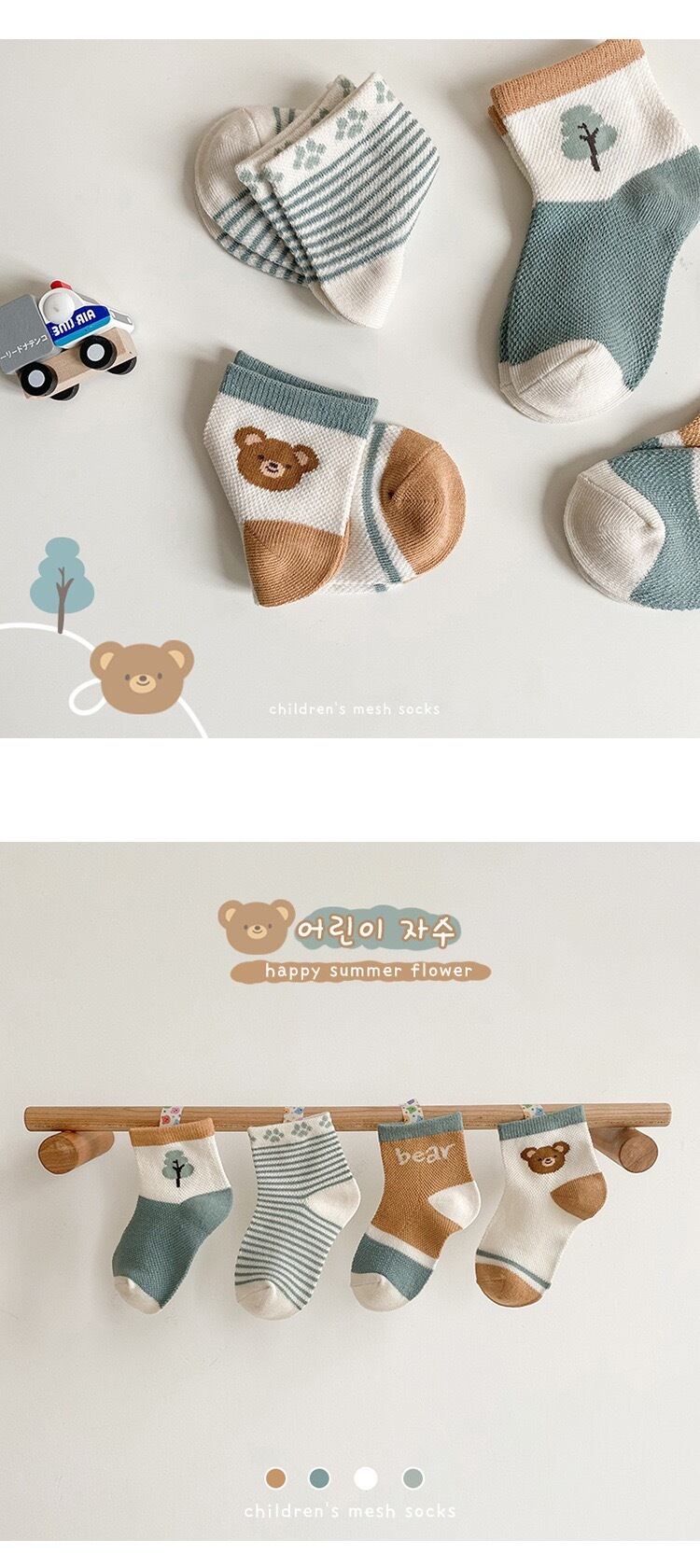 即納 送料無料 子供 靴下 夏 メッシュ 薄手 4足セット ソックス ベビー キッズ 韓国風 可愛い 通気性 保育園 通園 幼稚園 通学 女の子 男の子