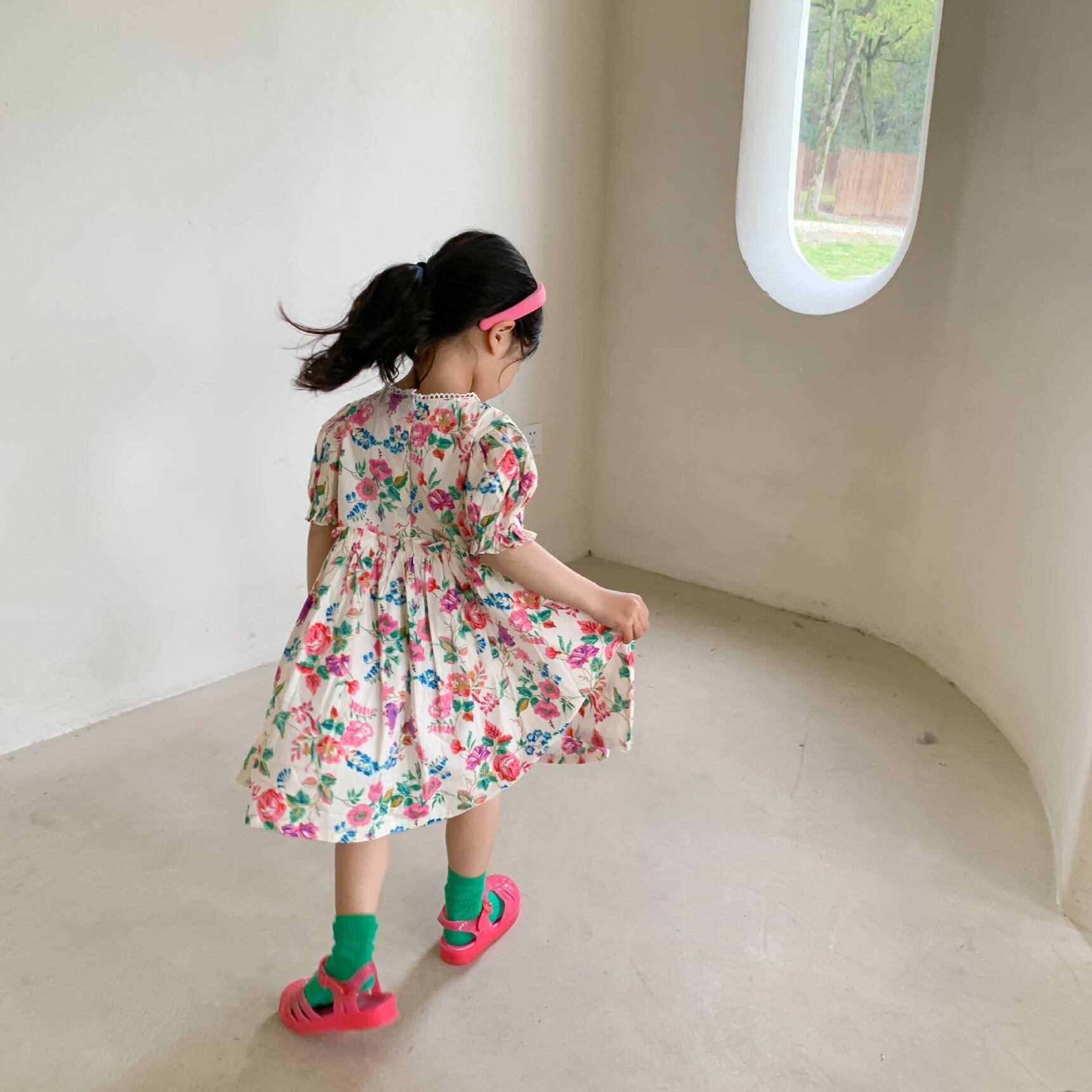 即納 送料無料 子供服 ベビー 韓国風 女の子 ワンビース ドレス かわいい 花柄 発表会 赤ちゃん服 夏 キッズ フラワー おしゃれ
