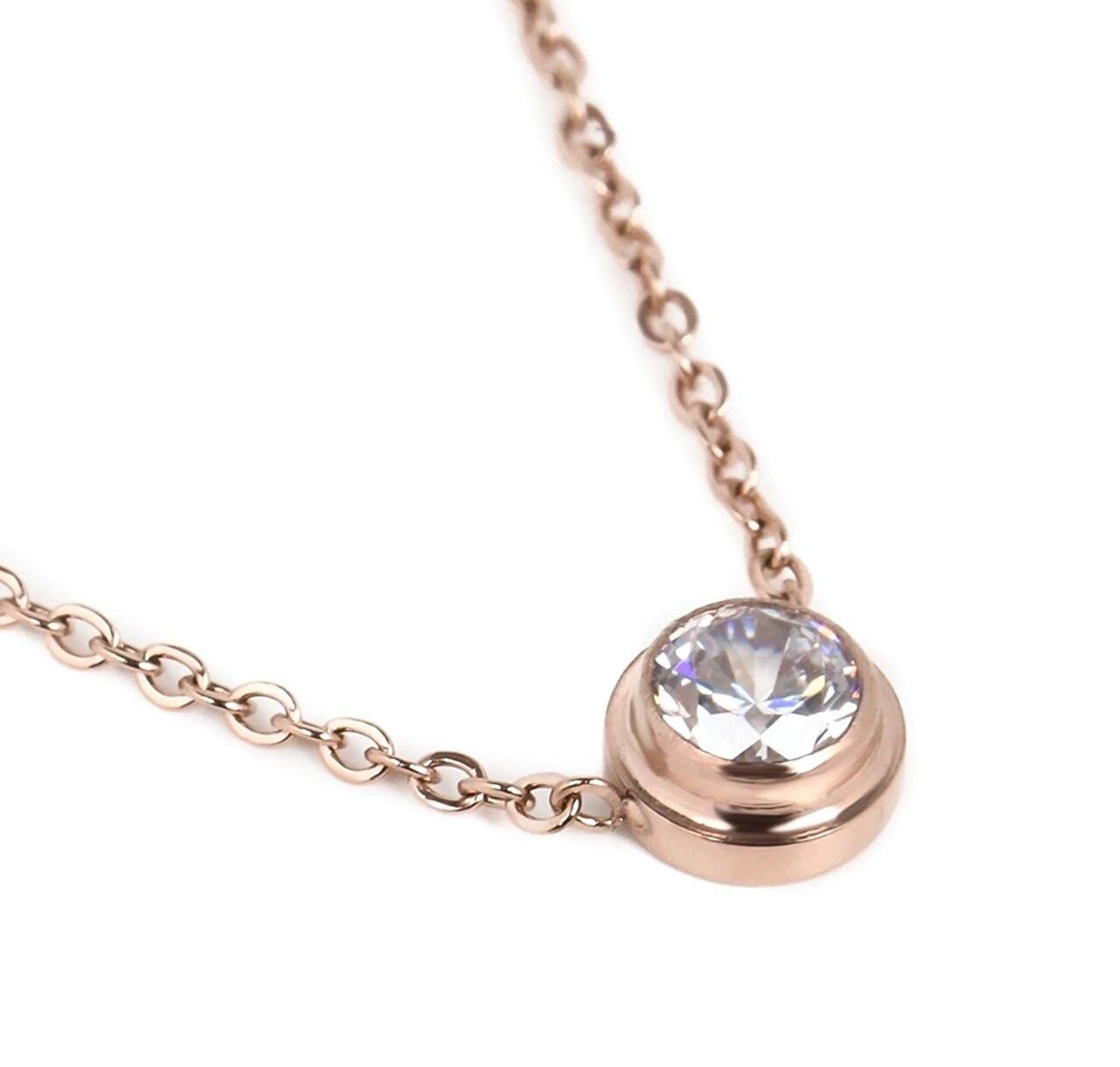 A01 上品な輝き 一粒 Czダイヤモンド ペンダント 18金ゴールド仕上げ ピンクゴールド サージカルステンレス かぶれにくい 錆びにくい 変色しない ジュエリー レディース ネックレス クリスタル