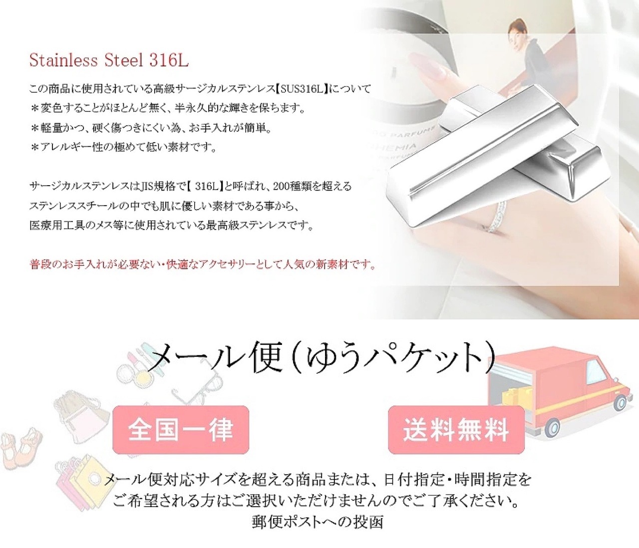 手術でも使うサージカルステンレスは、かぶれにくいので、金属アレルギーの方にもおススメです。