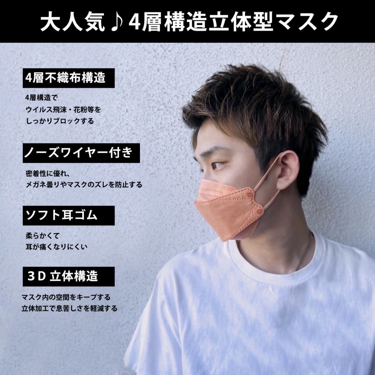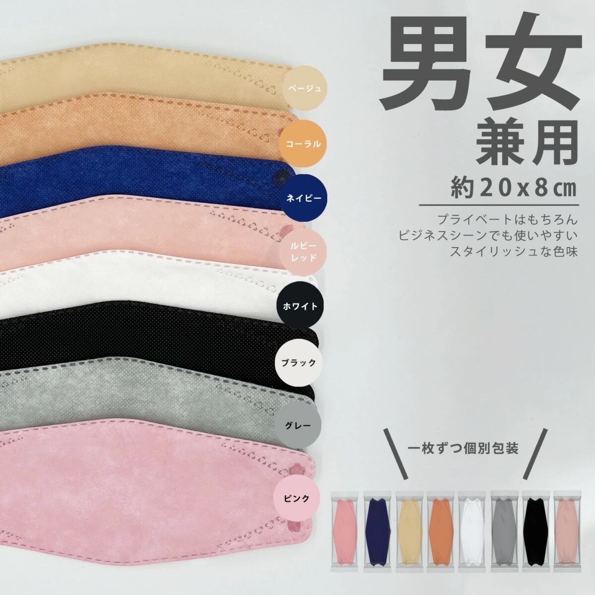 JN95 日本製マスク 柳葉型マスク Allone 多色 立体型 カラーマスク 個別包装 4層構造 男女兼用 30枚