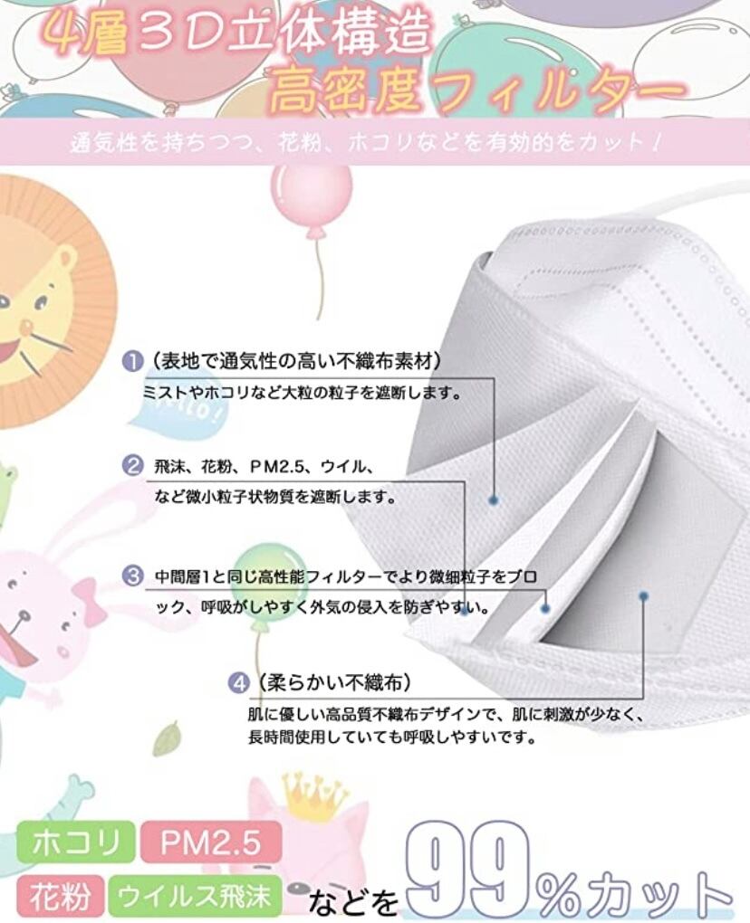 マスク 50枚 3D立体 絵柄マスク 子供マスク 呼吸しやすい KN95立体マスク 柳葉型