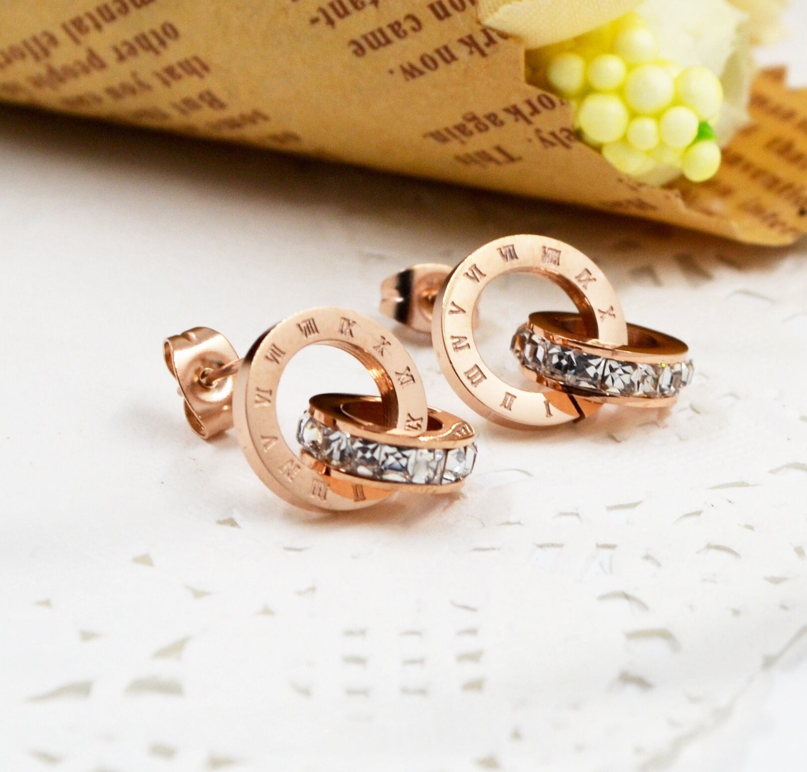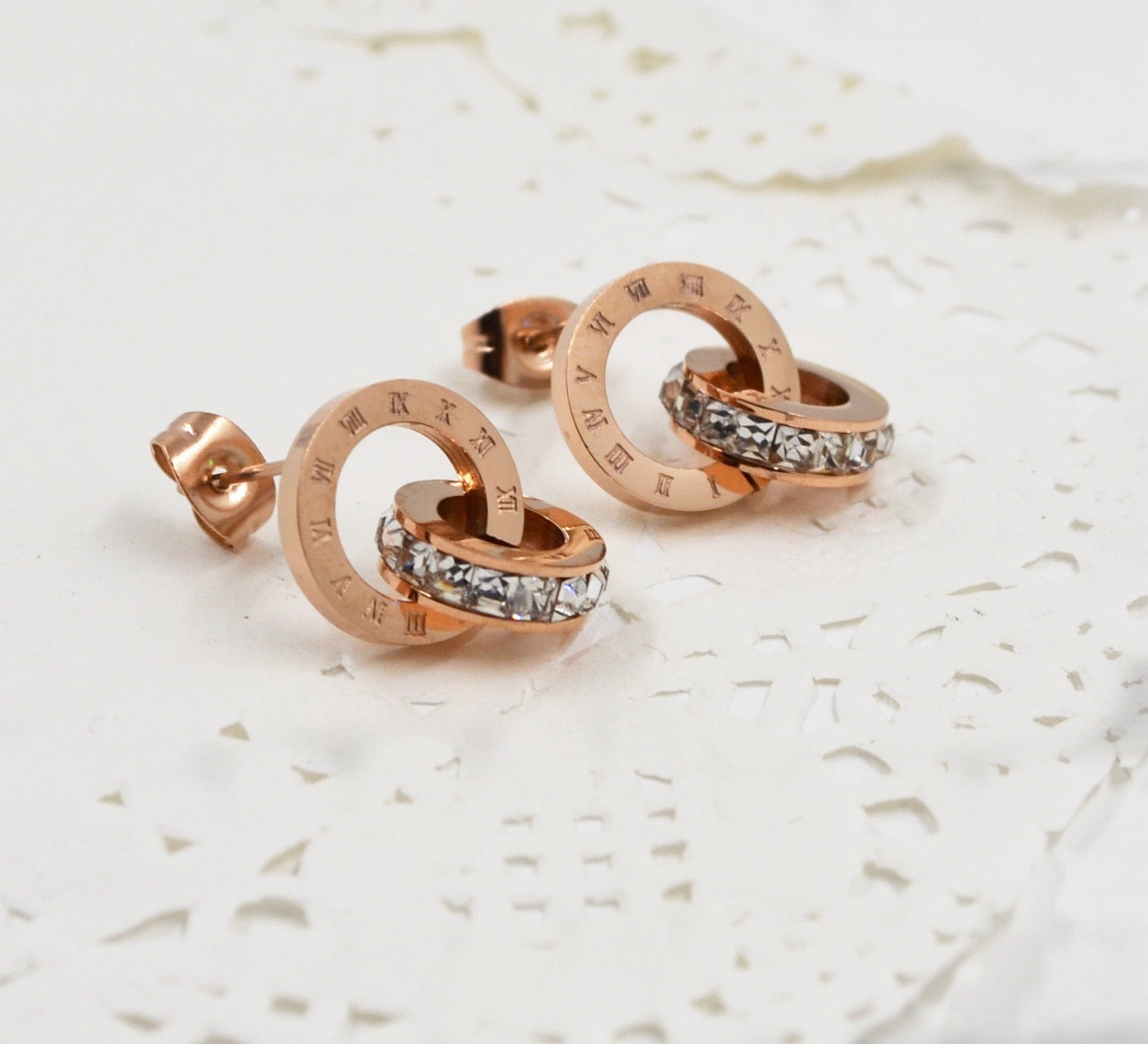A02 【高評価 alittlemore出品】【国内発送・最短二日届く】環型 ローマ字 ダイヤモンド ピアス ネックレス ブレスレット K18GP 高級感 上品 ステンレス サージカルステンレス 18金仕上げ アレルギー対策 錆びにくい ピンクゴールド イェーローゴールド かぶれにくい 変色しない