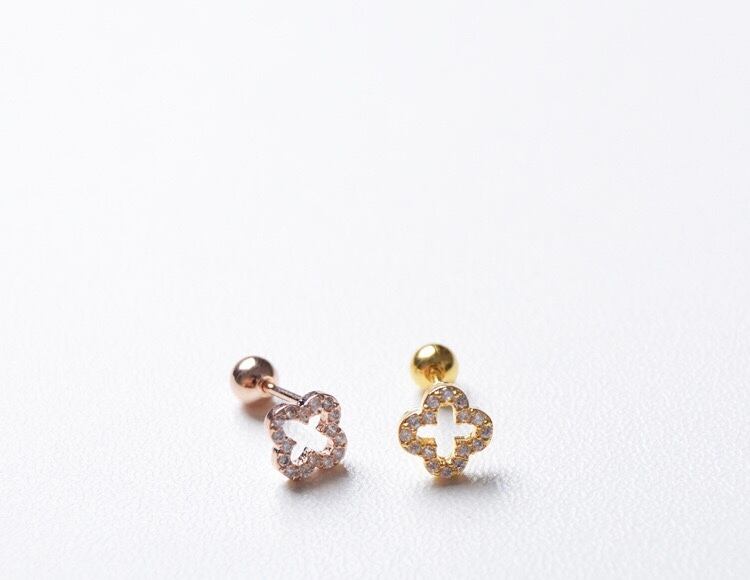 A05 四つ葉 ピアス レディース 落ちない 軟骨ピアス ボディーピアス 付けっぱなし 18kgp キラキラ ピンクゴールド ローズゴールド シルバー