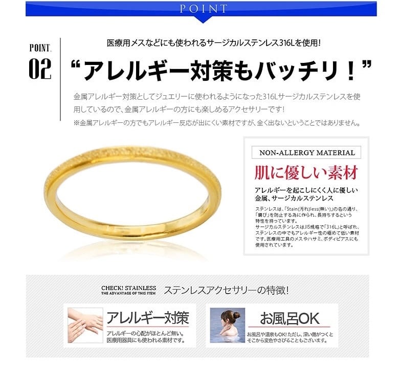 錆,変色にも強く、温泉,海水浴等で外すことなく、オシャレを楽しむ事ができます。